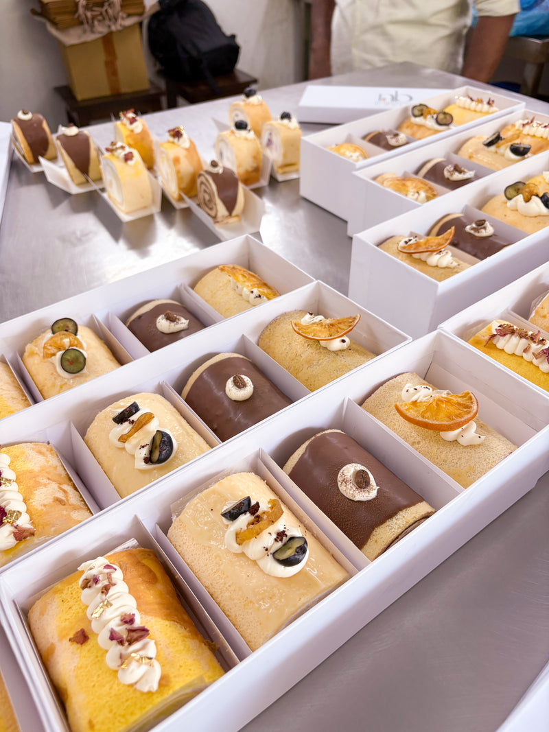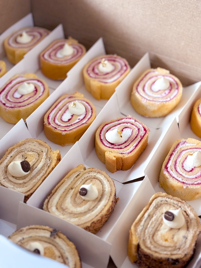 A soft, fluffy sponge cake rolled with rich cream filling, our Swiss...