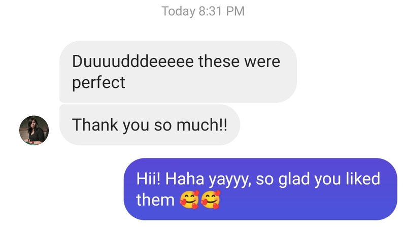"Hey, they were SOOOO good, thank you! 😭🥰"