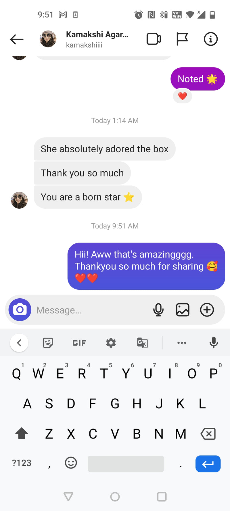 "She absolutely adored the box. Thank you so much! You are a born star ⭐"
