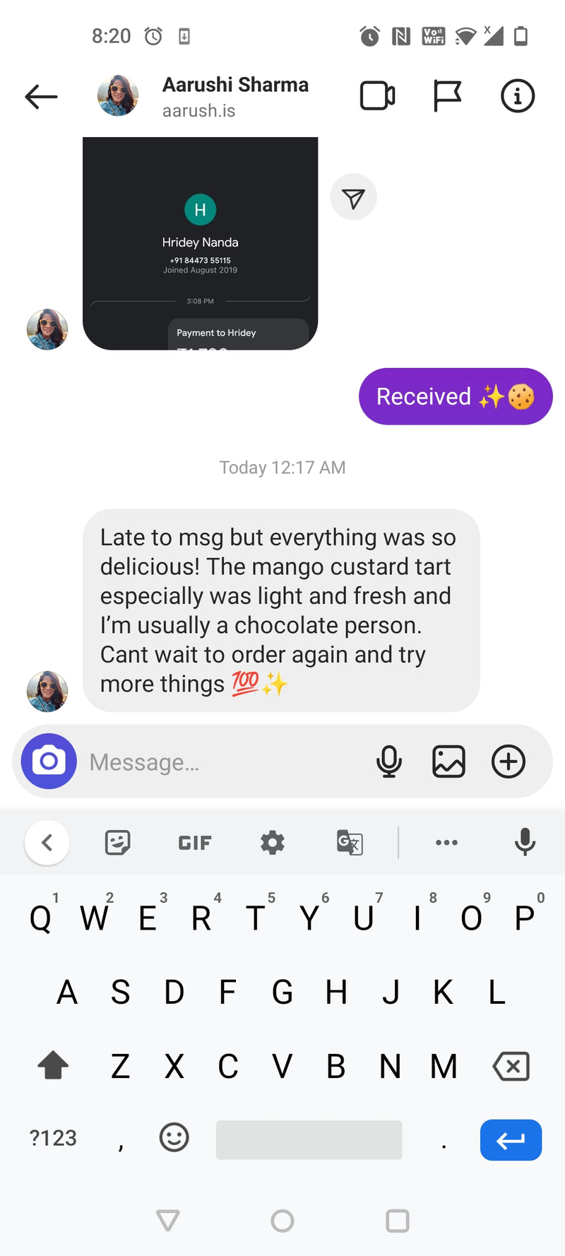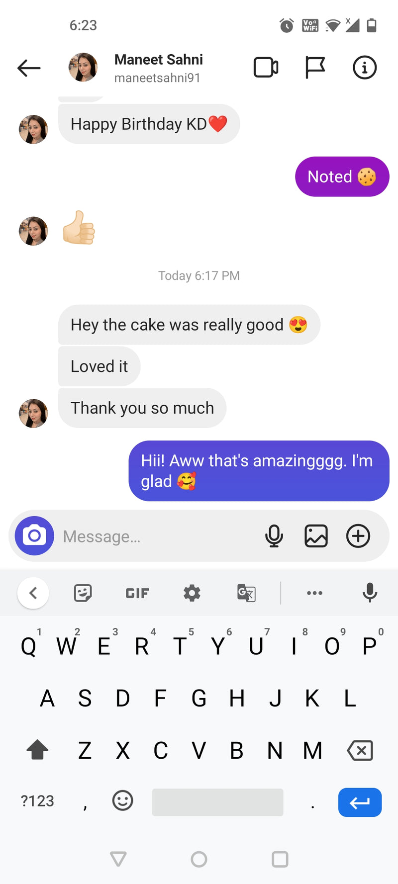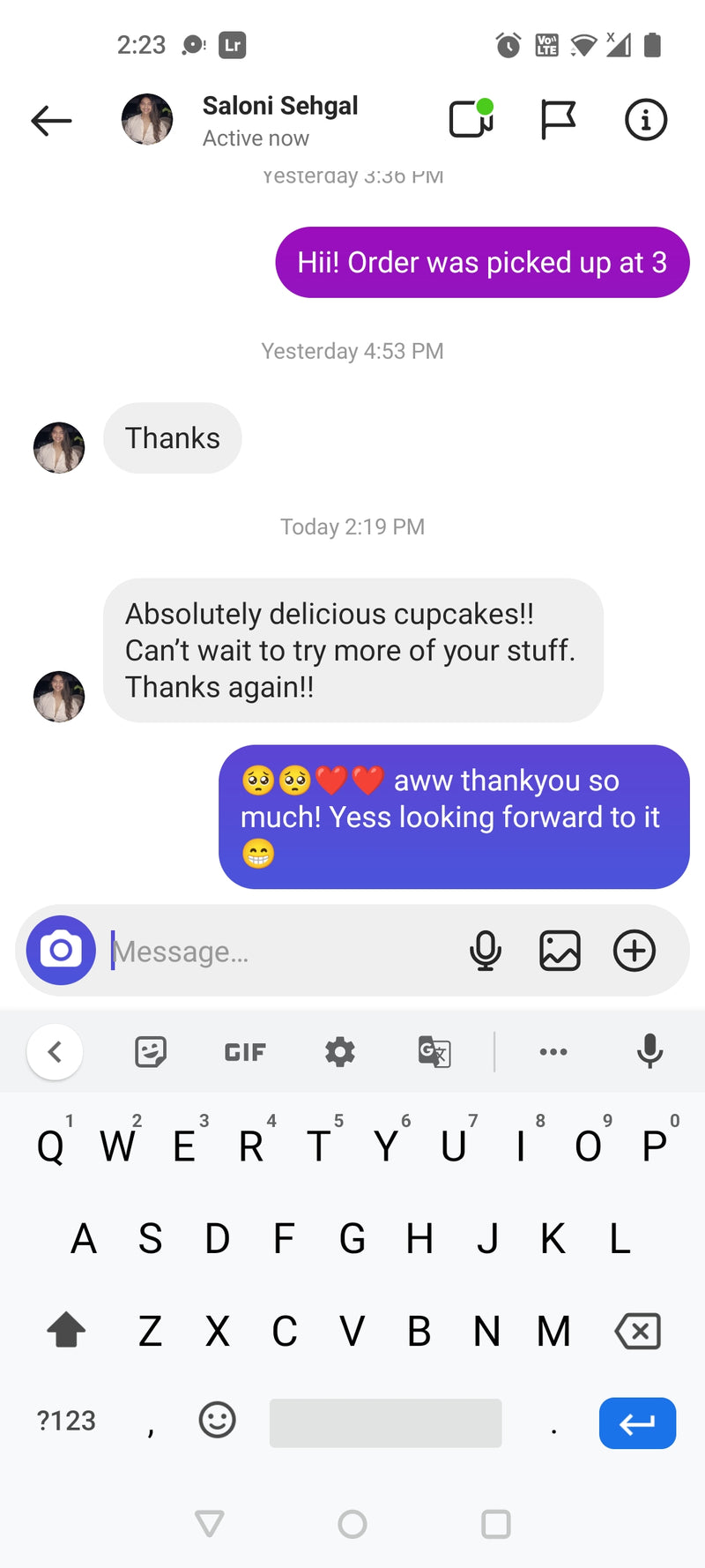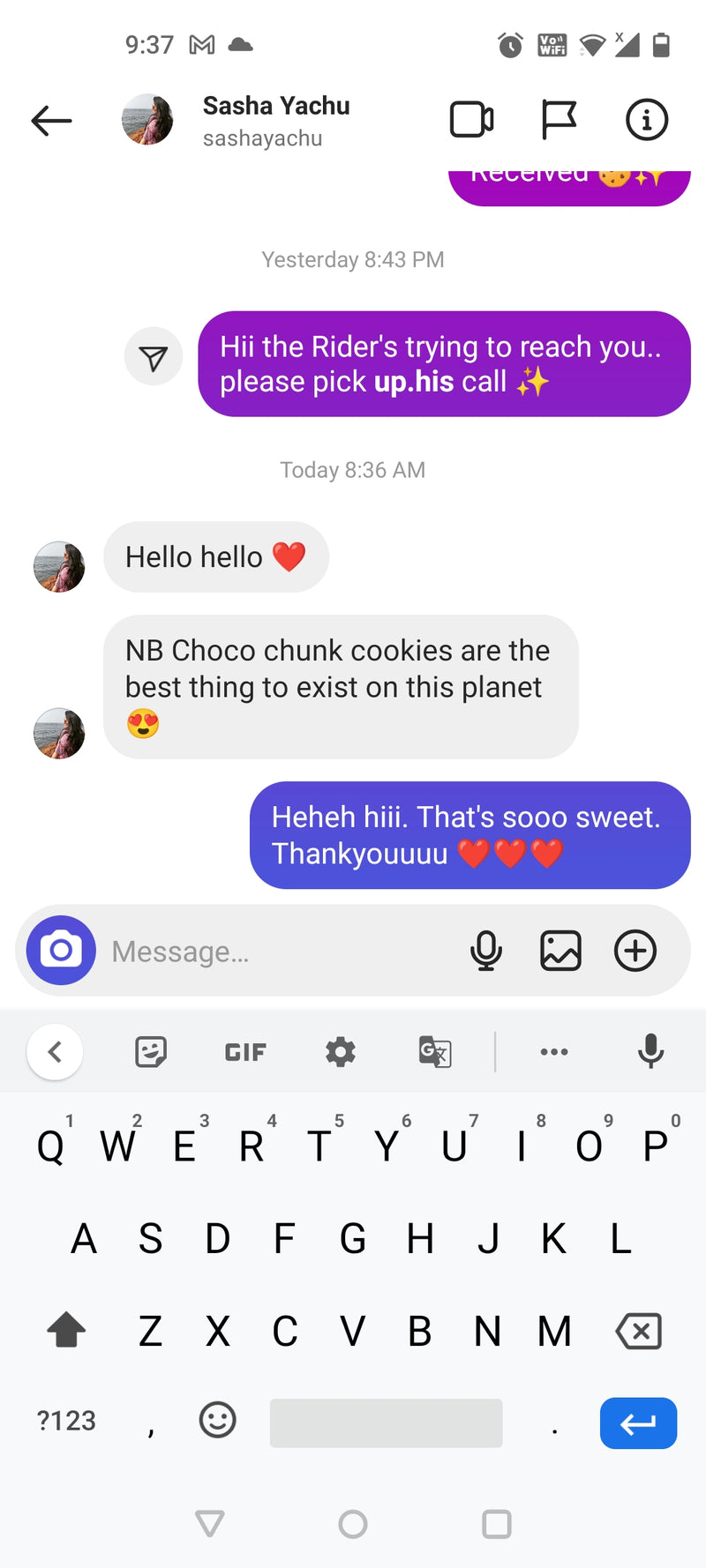 "Hey, the cookies were lovely. Thank you! ❤️"