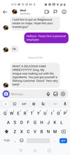 "It was legit one of the best desserts I've ever had. I mean it. I'm not just saying it because you sent it, but it really was."