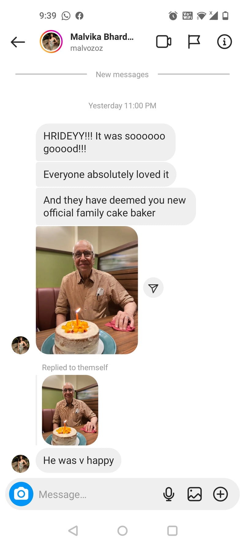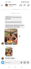 "HRIDEYY!!! Everyone absolutely loved it, calling it 'Masterchef level of baking'! You've been deemed the new official family cake baker."