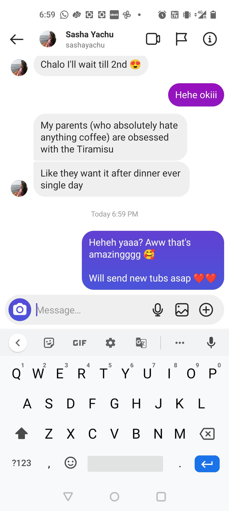 "Just wanted to say thank you. Mango Swiss Roll and Tiramisu was mind blowing. Absolutely made my day ❤️"