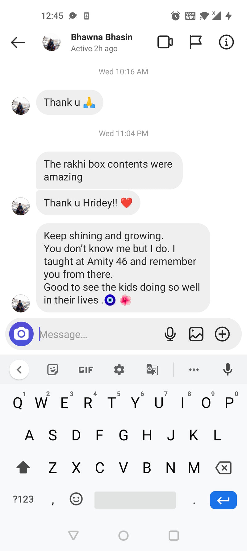 "The rakhi box contents were amazing. Thank u Hridey!! ❤️ Keep shining and growing."